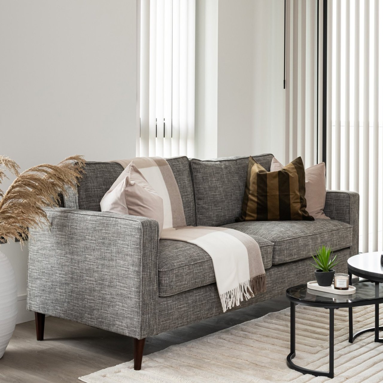 This one-bedroom furniture pack have incorporated our best selling entry level lines which are functional yet comfortable. Our designers have cleverly combined grey textured Emma sofas, with oak and black furniture. A sophisticated glass dining table helps to create a light and spacious feel. The white gloss Macy bedroom collection combined with a soft and calm colour palette of accessories shows how it can be adapted for all property styles.