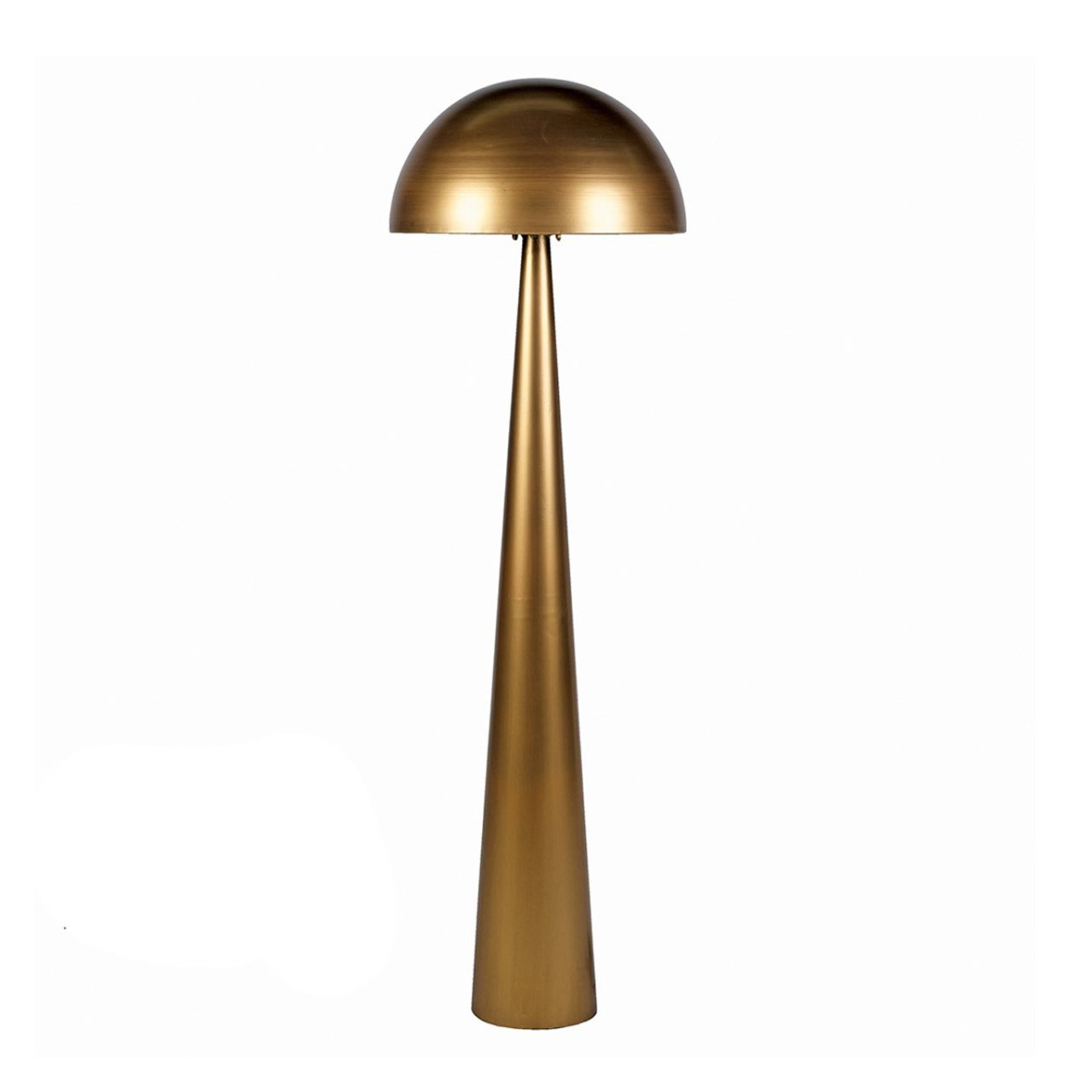 The Mushroom Floor Lamp in Gold brings a warm, sculptural presence to interior spaces through its smooth, domed shade and slender form. The rounded top softens the look, while the metallic gold finish adds a quiet sense of opulence while reflecting light gently into the room. It fits well beside sofas and armchairs, offering a calm glow that suits contemporary living rooms. It creates a balanced and composed ambience, making it easy to place in modern homes, show homes and rental properties where lighting needs to feel inviting without drawing too much attention. Used as an accent piece or part of a layered lighting scheme, it adds warmth and polish to any lounge area.
