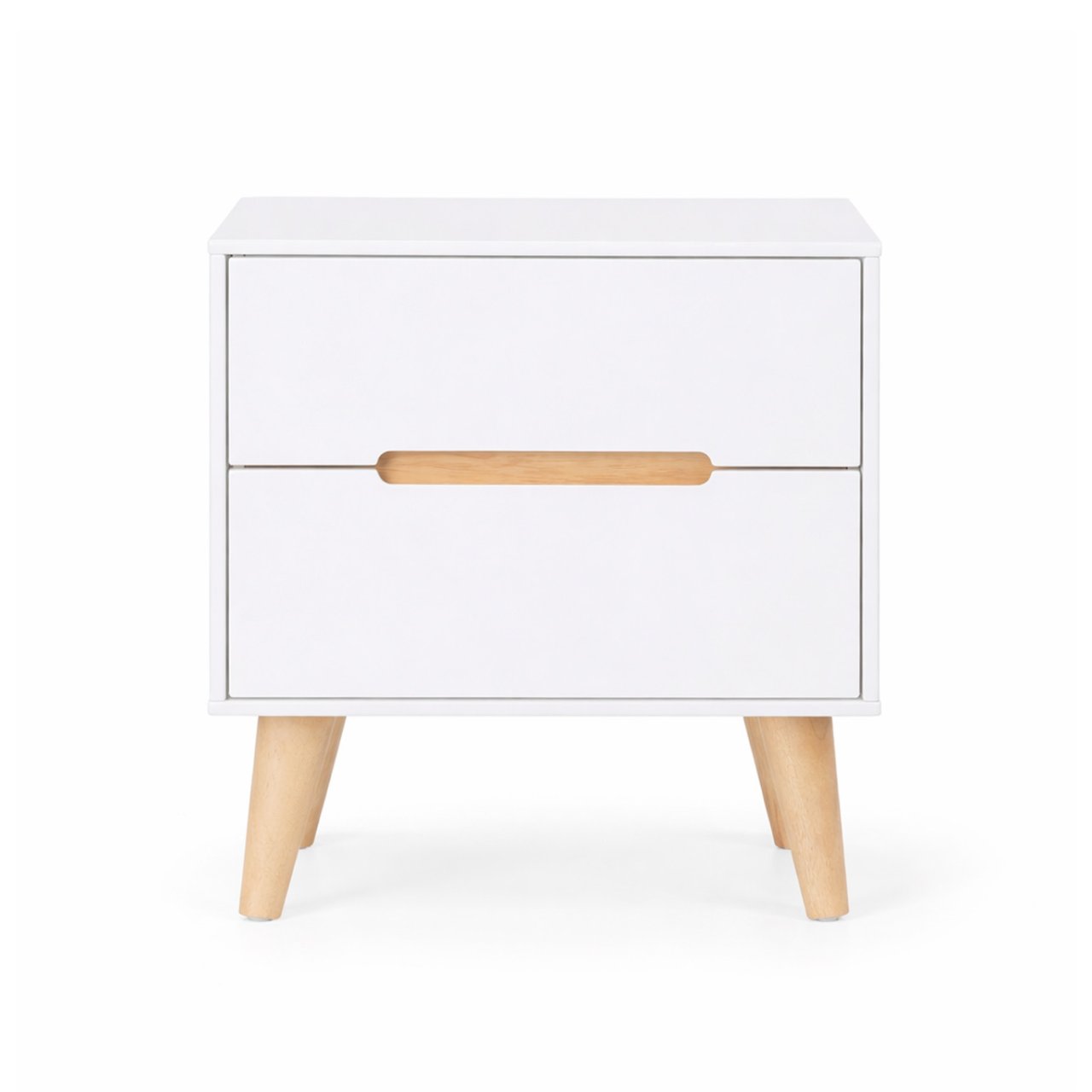 Retro design with a Scandinavian feel is great in any decor. The matt white finish and tapered oak finish legs add to the design. The recessed handles provide easy opening in this stylish three drawer Chest.