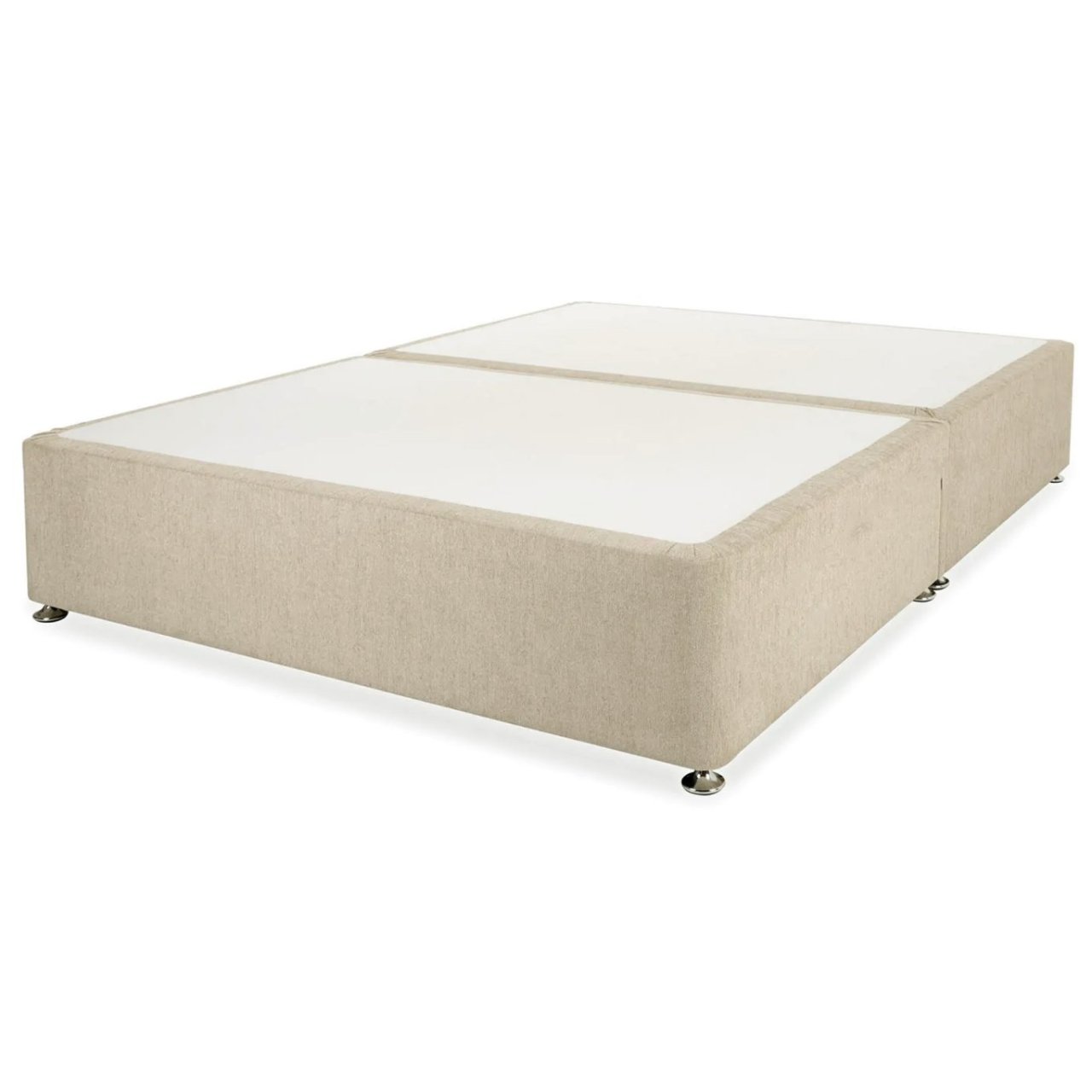 The Vanilla Double Divan Bed features a simple, versatile design in a soft neutral shade. Ideal for residential use, it offers reliable durability and effortless upkeep. The two-part construction links with metal connectors and rests on chrome glides for a polished, elevated finish. Made in the UK.
