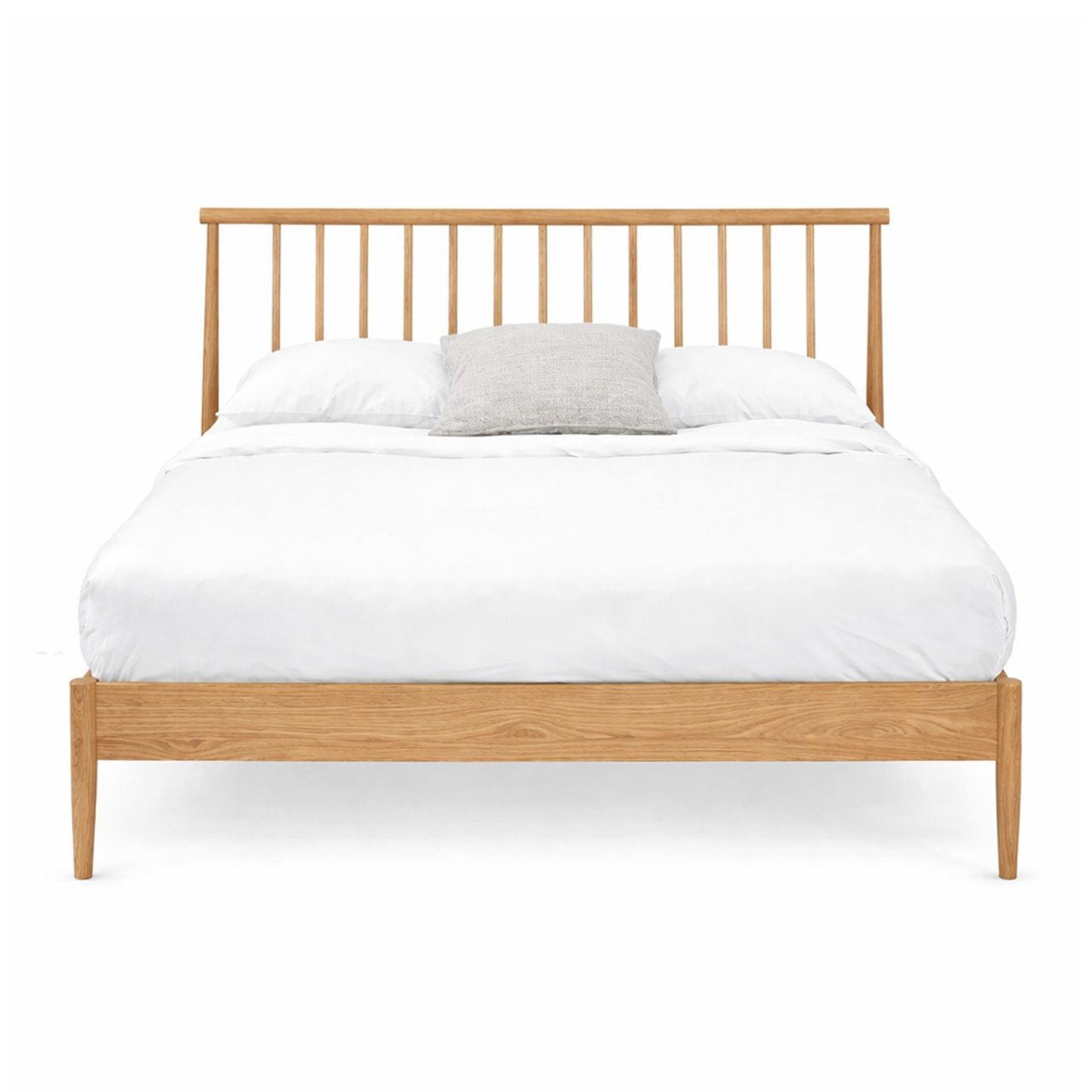 The Betty Double Spindle Bedframe in Black offers a contemporary twist on a classic spindle silhouette. Its angled spindles create an open, lightweight look, while the solid oak frame adds natural character with long-lasting strength. Tapered legs keep the profile sleek and modern, making the bed easy to use across both traditional and contemporary interiors. Built with a supportive slatted base and an additional central leg, it provides reliable comfort for everyday residential use and serviced accommodation.