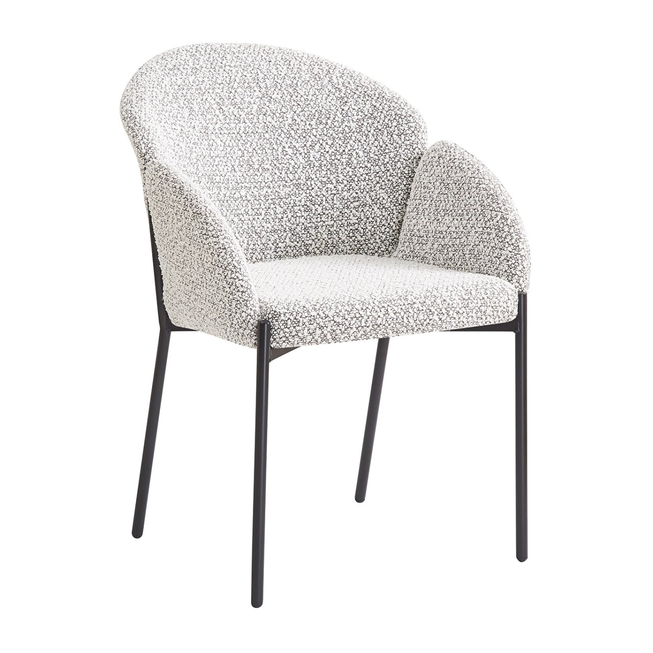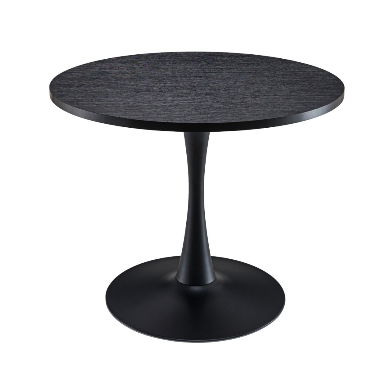The Celeste Round Dining Table has a modern, neutral design ideal for compact dining areas. Featuring an hourglass-shaped metal support and a round tabletop in a black woodgrain finish, it is both stylish and practical. The sturdy steel base provides strength and stability, while the smooth top is easy to maintain, making it ideal for rental properties. Its compact form comfortably seats two to four people, perfect for smaller dining rooms, open-plan apartments or BTR interiors. Pair the Celeste with upholstered dining chairs like Flora for a cohesive and elegant dining setup.