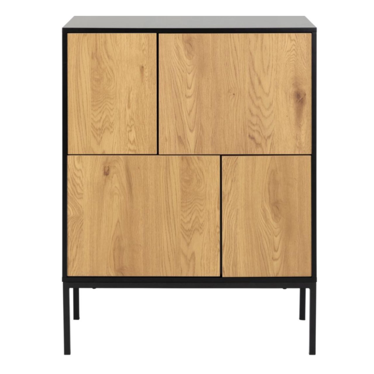The See Side Table in ash black is both stylish and cost-effective. It has a full metal frame that combines round and square motifs and makes for a sturdy base. The top has an ash black woodgrain effect which matches the frame and completes the dark, industrial design. The circular shape of the piece makes it an effective space-saver. The dark colour matches well with both minimalist and eclectic interiors.