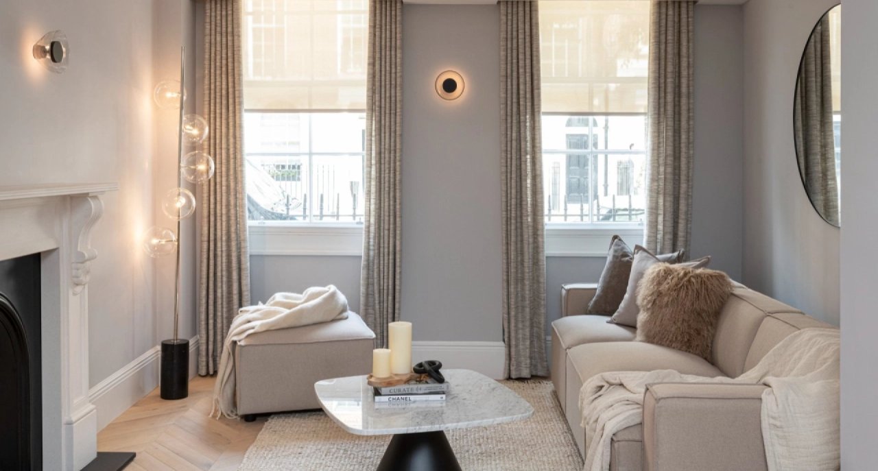 This stunning London townhouse showhome celebrates the warmth and character of traditional architecture. It embraces a warm autumnal palette with classic details that create a lived in yet beautifully maintained atmosphere. The colour palette draws inspiration from autumn's rich tones: burnt oranges, deep reds and warm browns that create an immediately inviting atmosphere. These earthy hues work harmoniously with the property's existing period features, enhancing rather than competing with original architectural details.
